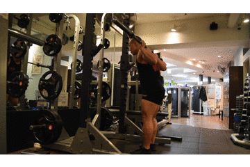 バーベルではなく自宅などで自重トレーニングとしておこなう場合には、両腕をクロスして肘を抱えてください。回数は筋力アップが目的なら1~6回、筋肥大なら6~12回、筋持久力アップなら15回以上を目安にしましょう。