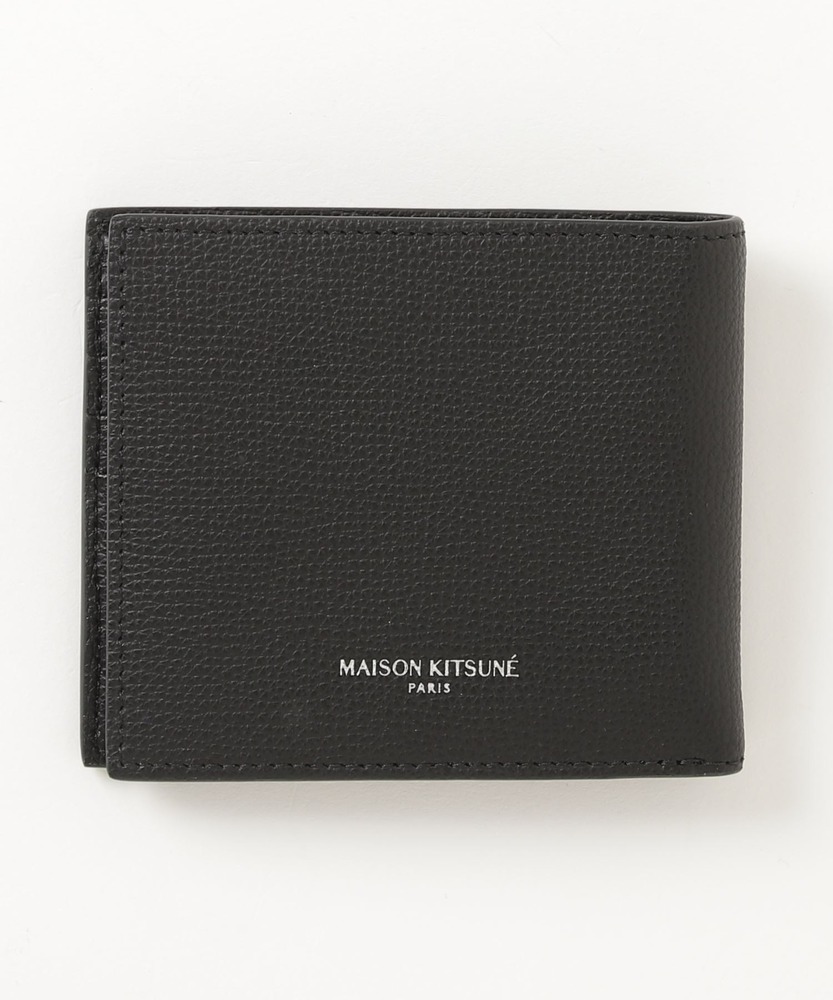 革製の二つ折り財布です。表面にはブランド名のプリント、裏面にはキツネのシルエットがあしらわれたシンプルなデザインです。ポケットに入るコンパクトなサイズながら、紙幣、硬貨、カードが収納可能で、実用性を兼ね備えた使い勝手のよいアイテムです。