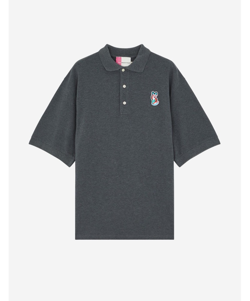 メゾンキツネとアーティスト・イラストレーターとしても活躍するクリスティーナ・ジンペルとの夢のコラボから誕生した、アシッドカラーで彩られた「ACIDE FOX」が胸元に映えるコットンポロシャツです。長めにデザインされたボタン付きのネックラインが特徴です。