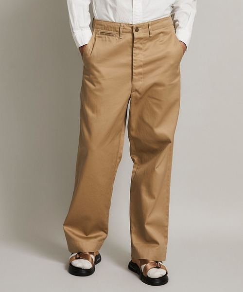 US ARMYのパンツをベースにした、クラッシックなデザインが印象的なチノパンになります。当時のサイズ感を再現した“VINTAGE FIT”が魅力で、これさえあればコーデの幅が広がること請け合いですよ。デニムジャケットとも良く合いますので、アメカジ好きやミリタリー好きにおすすめの1本です。