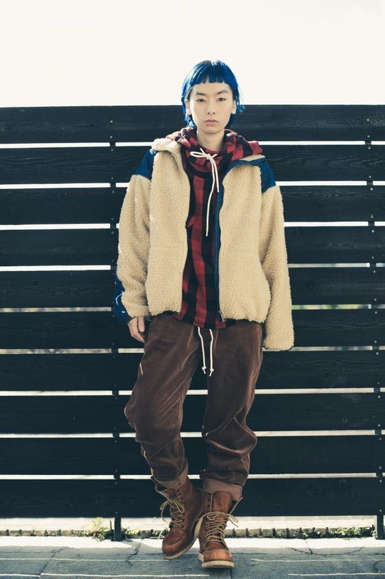 オアスロウ製のブルゾンにパーカーを重ね、ゆったりシルエットのコーデュロイパンツでゆる感を演出したカジュアルコーデになります。ハットとのカラーコーディネートも上手い着こなし方ですね。