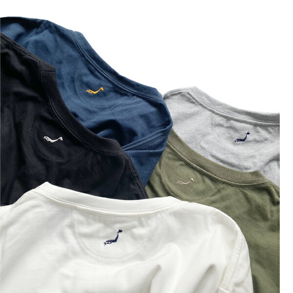 ベーシックなデザインのポケット付きTシャツになります。ゆったりめなシルエットと、後ろの襟元にあしらわれたブランドロゴを表す刺繍が魅力的な1枚です。こちらは無地Tシャツなので、重ね着コーデにおすすめですよ。デニムジャケットの中に着れば、カッコよく仕上がること請け合いです。