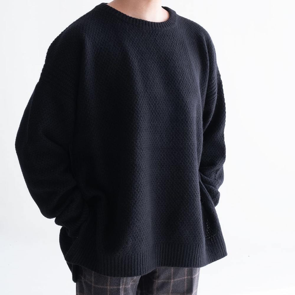 DISCOVERED(ディスカバード)のアンゴラニットのクルーネックセーターです。滑らかで柔らかい風合いのラムウール糸を使用した、アフガン編みの5Gクルーネックニット。シンプルなクルーネックのセーターなので、着回し力が抜群です。素材はラムウール65%、アンゴラ20%、ナイロン15%。