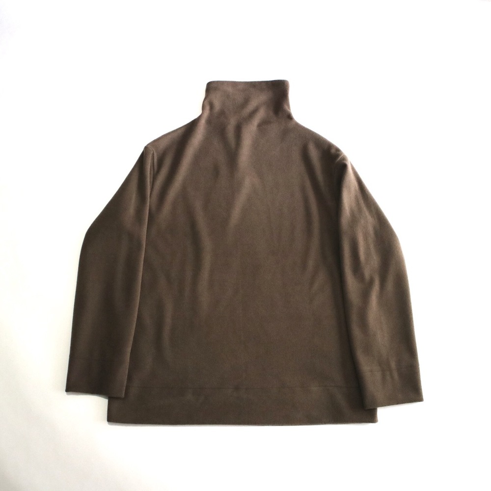 LAMOND(ラモンド)のアンゴラニットを使ったハイネックセーターです。ニットとスウェットの中間のような、しっとりとした風合いが特徴のニット。ネックの高さを前が長く後ろを短く設定することで、タートルネックとモックネックを調和させたような独特なネック周りになります。素材はアクリル80%、ナイロン10%、アンゴラ10%。
