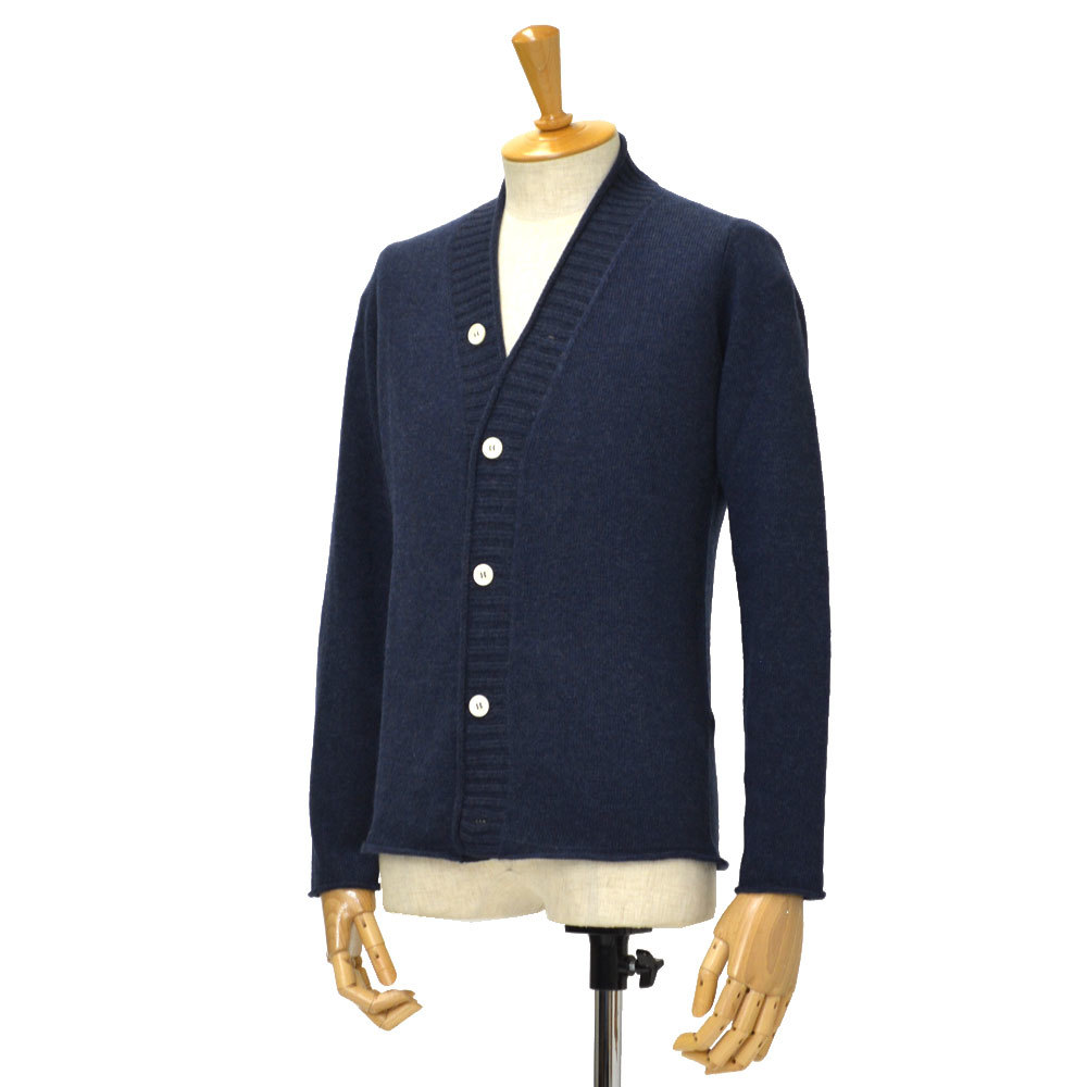 MOTHER HAND artisan(マザーハンドアルチザン)のアンゴラニットカーディガンです。前立てのヘム部分や、第一ボタンは留まらない仕様など、シンプルでありながらデザイン性のある作品です。使い続けるにつれ、毛足の長い糸は徐々にフェルト化していき、より風合いのあるニットになっていきます。素材はウール75%、アンゴラ25%。