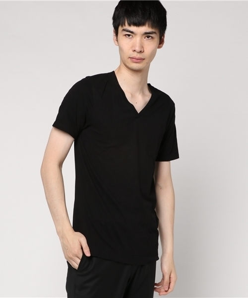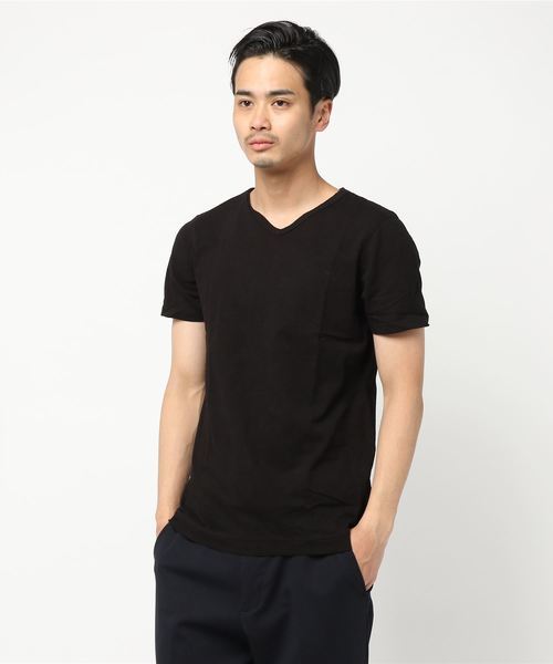 深めのVネックで、インナーにぴったりのTシャツです。首元のほどよい開き具合とタイトめなつくりで、トップスとしても使えます。素材の質がいいため、何度か着てもシワになりにくいのもうれしいポイントです。