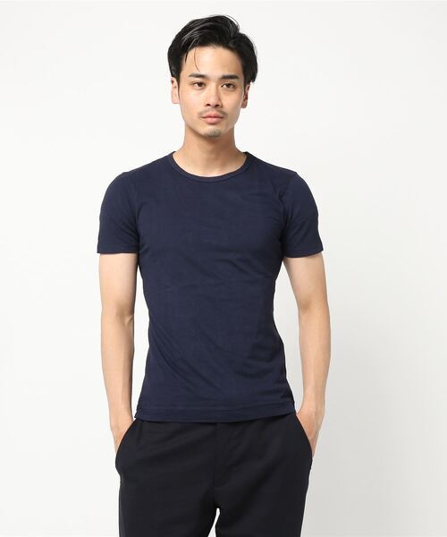 ジェームスクルーネックTシャツは、細身のシルエットと抜群のフィット感が魅力です。Tシャツだけだとラフになりがちですが、こちらのアイテムなら1枚でもシックで大人な雰囲気にまとまるでしょう。