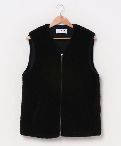 スリードッツのブルゾンが欲しいという人におすすめなのが、こちらのアイテムです。フランス製のリサイクルポリエステルのファー素材を採用しており、上質な風合いと適度なフィット感があります。タイトなデザインのためかさばりにくく、少し寒い時期などに気軽に羽織れる商品です。