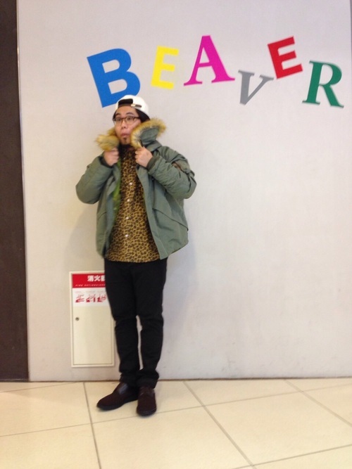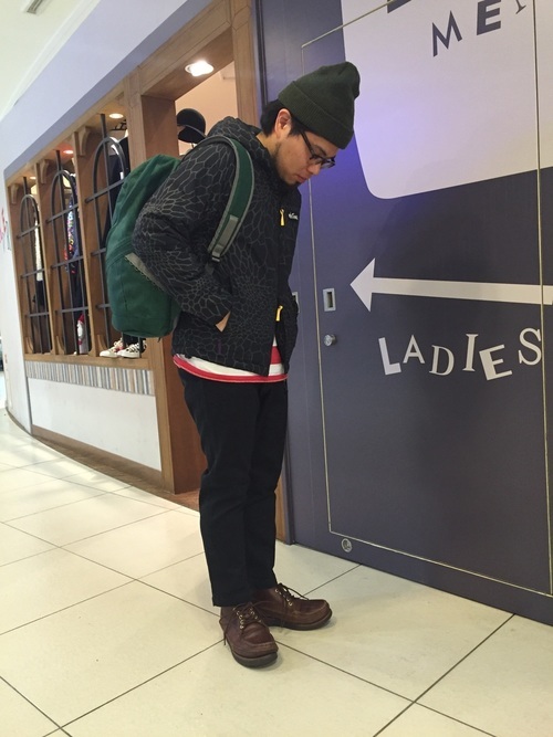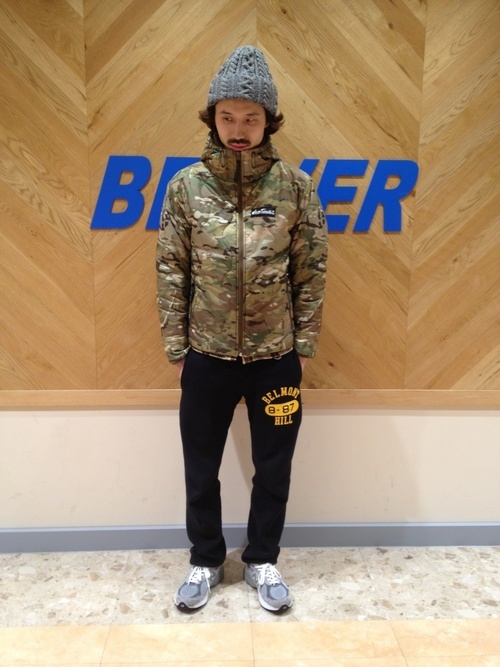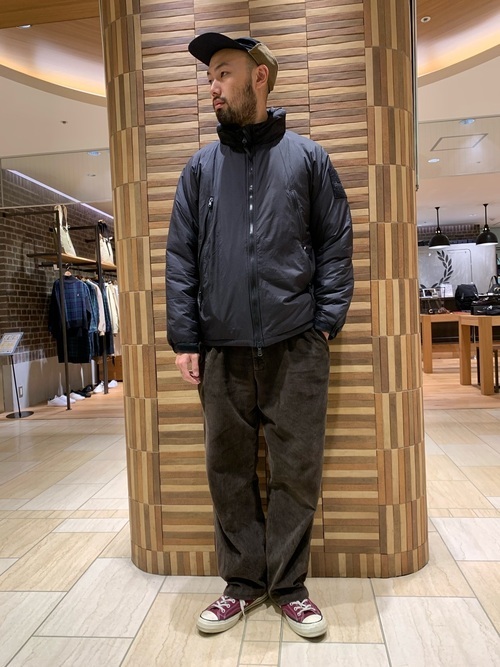 コーデュロイのパンツに、ワイルドシングスのプリマロフトパーカーのメンズコーデになります。ジャケットはBEAVER別注のクレイジーカラーを選んで、それ一枚でおしゃれ度をアップさせました。モノトーンのニットキャップとも好相性ですね。