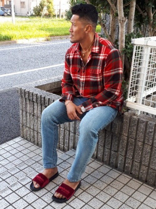 秋らしいチェックシャツを使ったマッチョに似合うファッションコーデです。赤をベースとしたチェックシャツはマッチョのいかつい雰囲気を緩和してくれます。加えて、スタイリッシュな明るいカラーのデニムパンツを合わせることで、筋肉質な体型とのギャップをつくることができます。