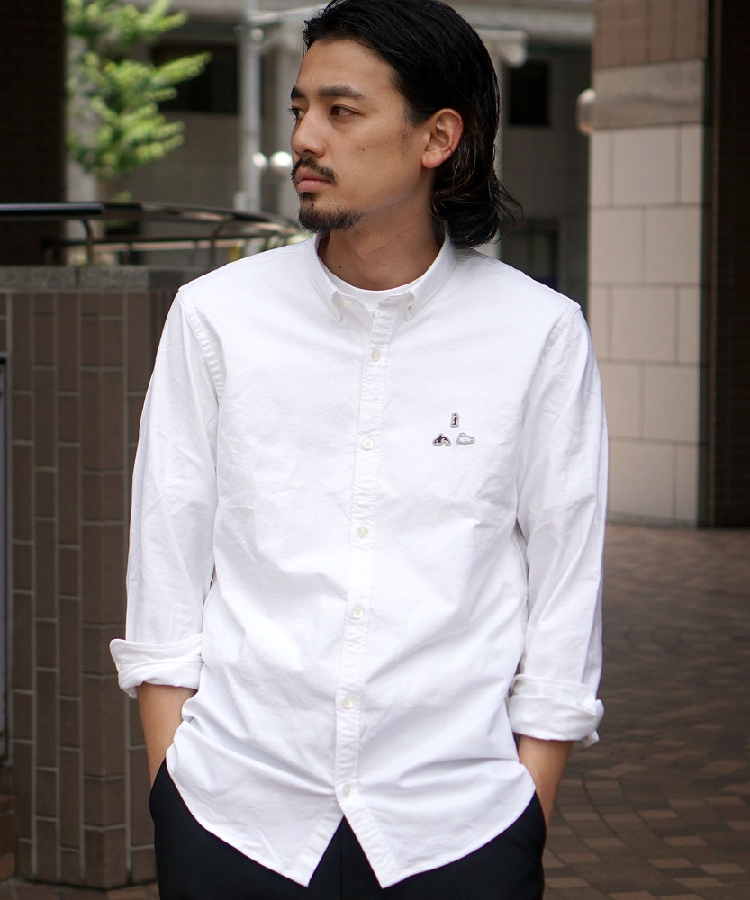 ストレッチオックス アニマル ワッペン ボタンダウンシャツ