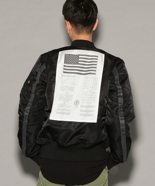 背中に大きくあしらわれた星条旗プリントや袖に施されたリフレクターが、インパクト満点のMA-1になります。リバーシブル仕様になっているため、その日の気分によって表裏を楽しめるのが魅力です。