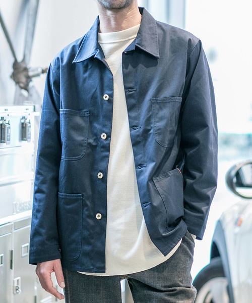 程よい丈感とこだわりのシルエットで、着る人やシーンを選ばないスタイリッシュなショップコートです。フロントの4つポケットとは別に、サイドにスラッシュポケットを採用し、コートを着ながら作業着のポケットにアプローチできます。素材はTCツイルです。