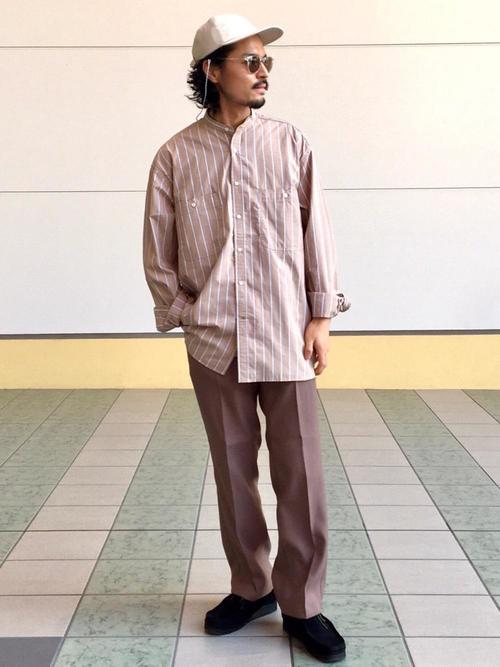 ・バンドカラーシャツ:UNIVERSAL OVERALL×relume(¥9,350)