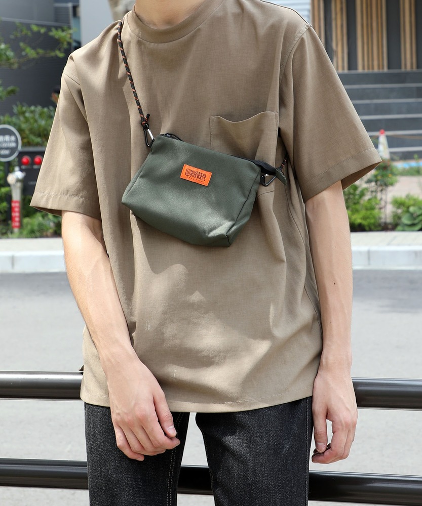 コンパクトなサコッシュとポーチがミックスしたショルダーバッグです。横幅19.5cm×縦幅14cm×マチ5cmの旬のコンパクトなサイズ感。マチが広く取られているので、財布やスマホ、パスケース等が入ります。フロントのロゴがシンプルなアクセントになっています。