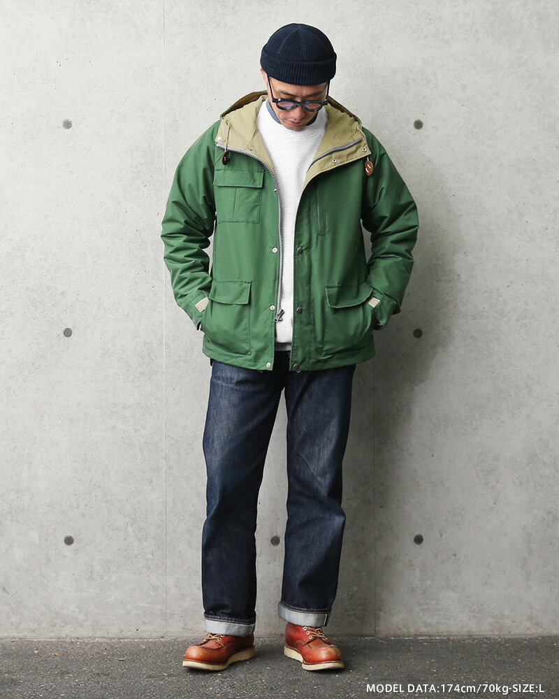 こちらは、1980年代から2003年まで、シエラデザインズの人気アイテムとしてロングセラーだった「MICRO LIGHT ANORAK」というアイテムを、60/40クロスバージョンで再現したアイテムです。ヴィンテージ感があり、大人男性のアメカジファッションなどにピッタリのアイテムとなっています。
