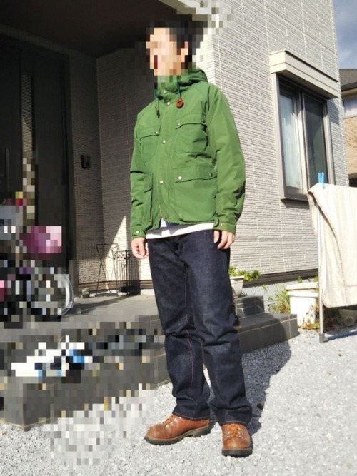 こちらも、シエラデザインズのマウンテンパーカーとデニムを合わせたコーディネートです。グリーンのマウンテンパーカーがとてもきれいに映えていて、さまざまなアイテムと馴染みの良いデニムと相性抜群です。こちらのようなコーデなら、明るい色にも挑戦しやすい着こなしなので、参考にしてみて下さい。