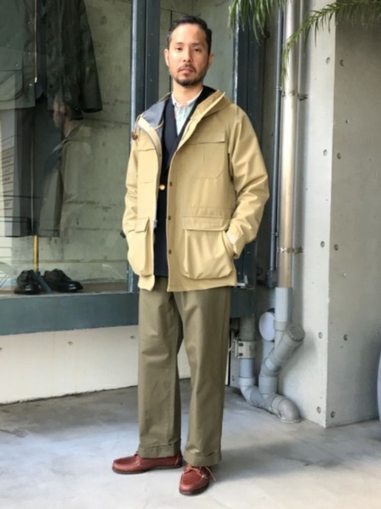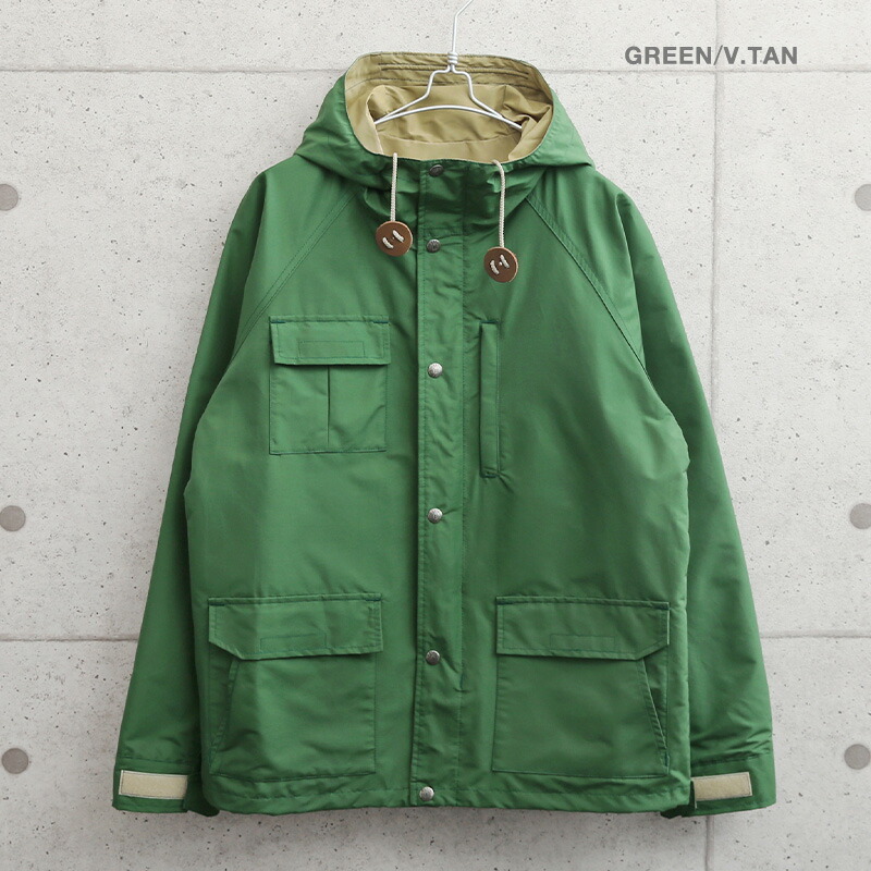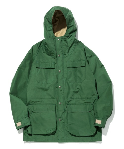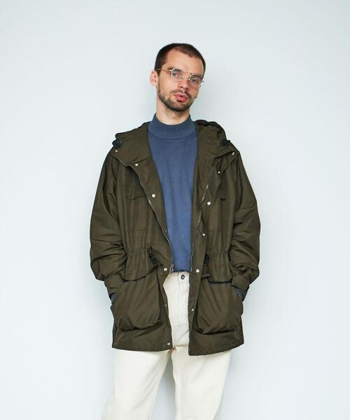 60/40の生地を使用し、ボリュームのあるシルエットを作った日本製のマウンテンパーカーです。ボリュームがあり、かつミドル丈となっているためアウトドア感が薄まり、街着のアウターとして使いやすいデザインに仕上がっています。他のマウンテンパーカーにはなかなかない、裏地をなくした珍しい仕様も特徴です。