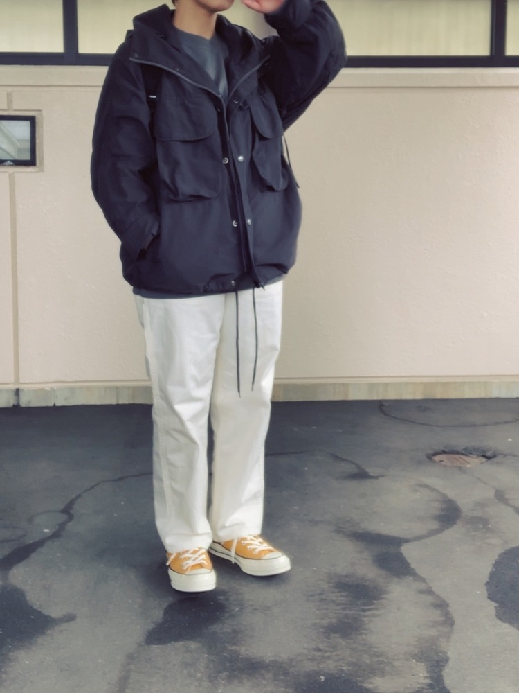 マウンテンパーカー×Tシャツ×ワークパンツ