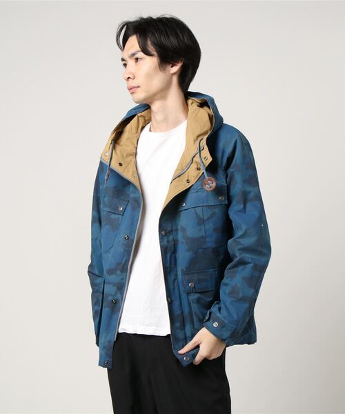 定番モデルをカモフラージュ柄にデザインしたマウンテンパーカーは、コーデにアクセントを加えてくれる1着です。フロント部のジップは、ジッパーとスナップボタンのダブル仕様となっています。ネイビーとベージュの2色展開なので他のアイテムと組み合わせても浮かず、どのカラーのアイテムとも馴染みやすいので使いやすさも抜群です。