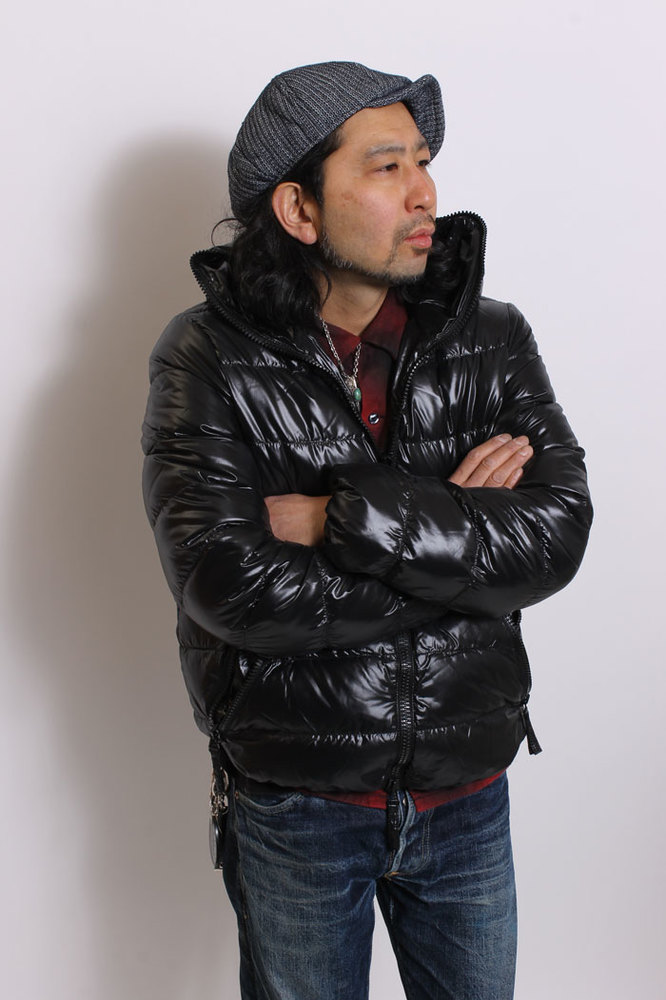 デュベティカのブランドアイコンでもあるショート丈のモデルです。フードトップまでのジップがあるのはもちろん、表と裏、ジップの配色をあえて変えているのもおしゃれ。表地はウルトラシャイニーナイロン生地を使用し、ラグジュアリーな光沢感を実現しています。