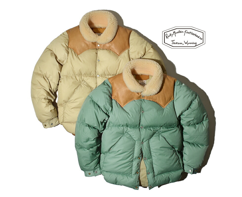 ロッキーマウンテンフェザーベッドの代表モデル、クリスティベストをアレンジしたジャケット。表地・裏地には特注ナイロン、襟に天然ムートン、中綿はヨーロッパ産の撥水ダウンと、デザイン性・防寒性共に優秀なアイテムです。ブランドのこだわり一枚革のウエスタンヨークやパールボタンなどロッキーマウンテンフェザーベッドらしさを味わえる一着です。