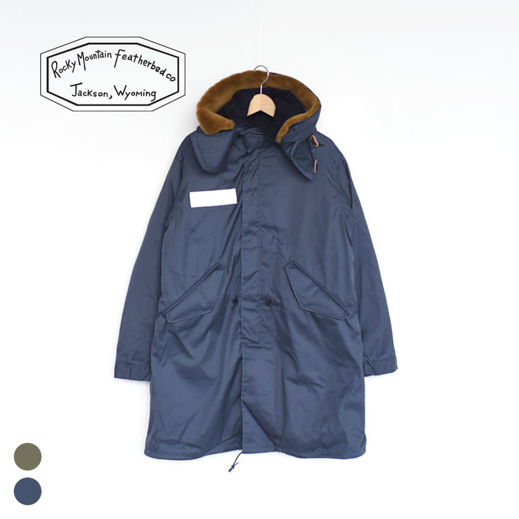 ロッキーマウンテンフェザーベッドの最高級ラインのコートは、ミリタリーウエアから抽出した男らしいデザインが特徴。アメリカで発見したデッドストックのアメリカ軍のポプリン生地で作った逸品です。フードに付いたアメリカンシープのムートンは着脱可能。防寒性を調節するダウンライナーは、取り外して単体でも使える優れものです。