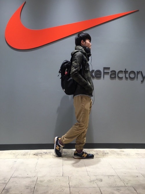 チノパンとマウンテンパーカーに、リュックを合わせたメンズコーデです。派手すぎないカモフラ柄のパーカーなので主張しすぎず程よい洒落感があり、チノパンと合わせているのでよりきれいめにまとまっています。最後にリュックを背負って、ラフかつ雰囲気を後押ししたスポーティーな着こなしに。