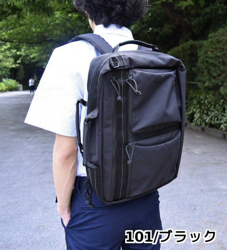 ミリタリー感強めのビジネスリュックです。光沢感のあるナイロンが使われているため品を感じます。背面にはメッシュ素材が使われているので、通気性も抜群なアイテムです。物の出し入れがとてもしやすいように大きく開閉ができ、メイン収納が2つあり前後で別れ整理がしやすい仕様になっているのでとても便利です。