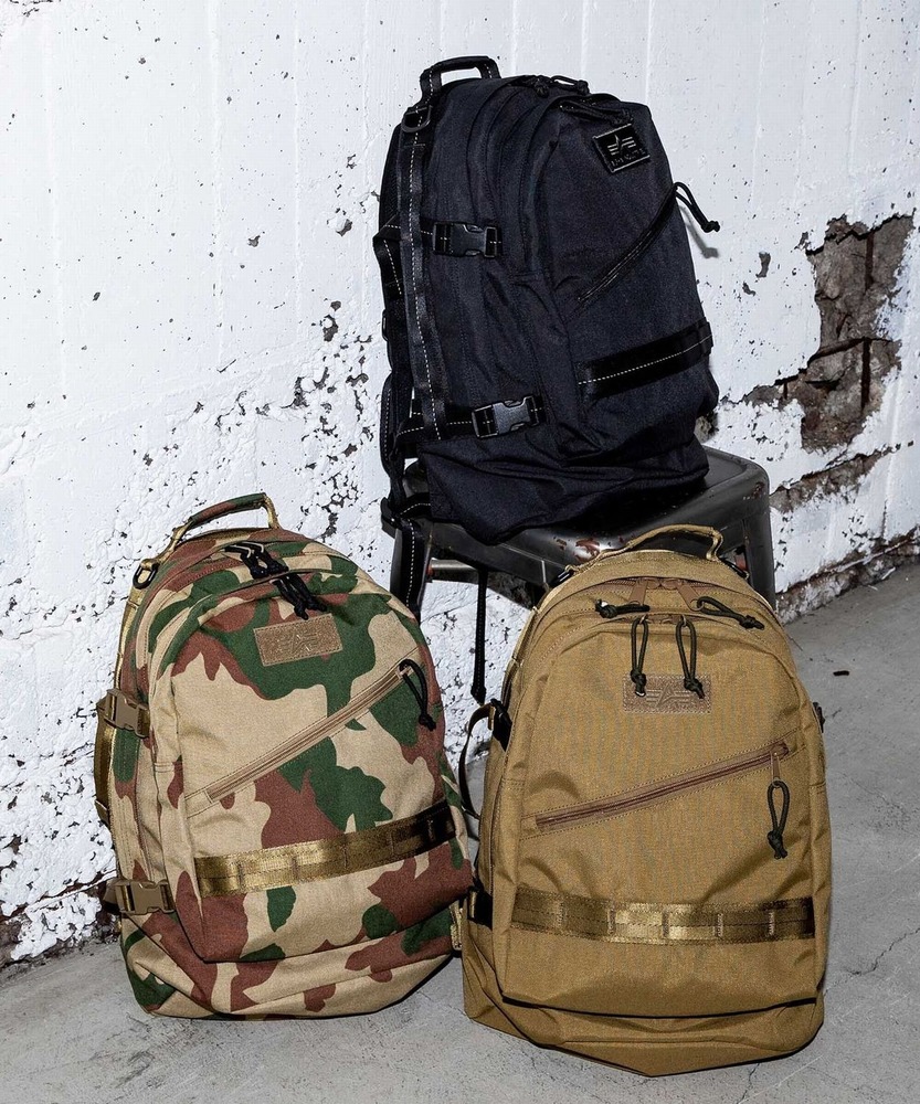 しかし実際はリュックの種類が多様で、おしゃれで機能性抜群なアイテムが多いです。なかにはシックなものやビジネスシーンでも使えるアイテムもあり、意外に万能なリュックがたくさんあります。そこで今回はアルファインダストリーズ人気のリュック15選や、メンズコーデ例を紹介していきます。