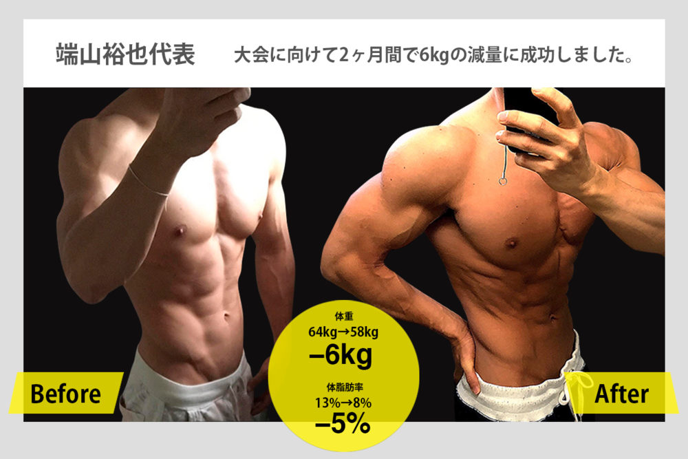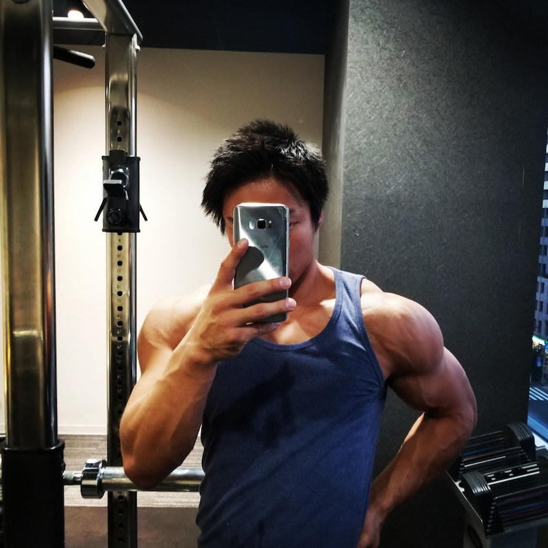こちらは、ONE REP GYMというジムを経営されている端山裕也さん。普段からも鍛えられていますが、今回はボディビル大会に向けてさらなる追い込みをされています。2か月で6kgの減量をされ、肩の三角筋も大きく発達し、肩メロンになっています。