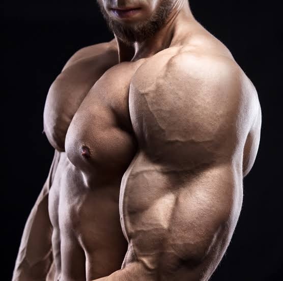 肩の三角筋が発達して丸々としたメロンのように見えませんか?これが肩メロンです。メロンの縞模様のように血管が浮いており、本当にメロンのように見えるということがわかります。