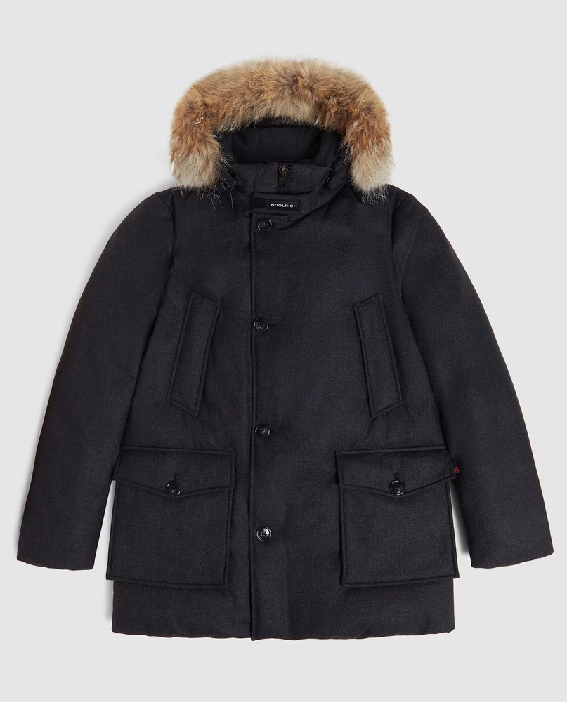 ロロ・ピアーナ社の透湿防水機能を備えた「ストームシステム」をアウターシェルに採用した、ウールリッチのアークティックパーカーです。上品なメランジ調のウール生地を採用し、オリジナルとは一味違うエレガントさが魅力。