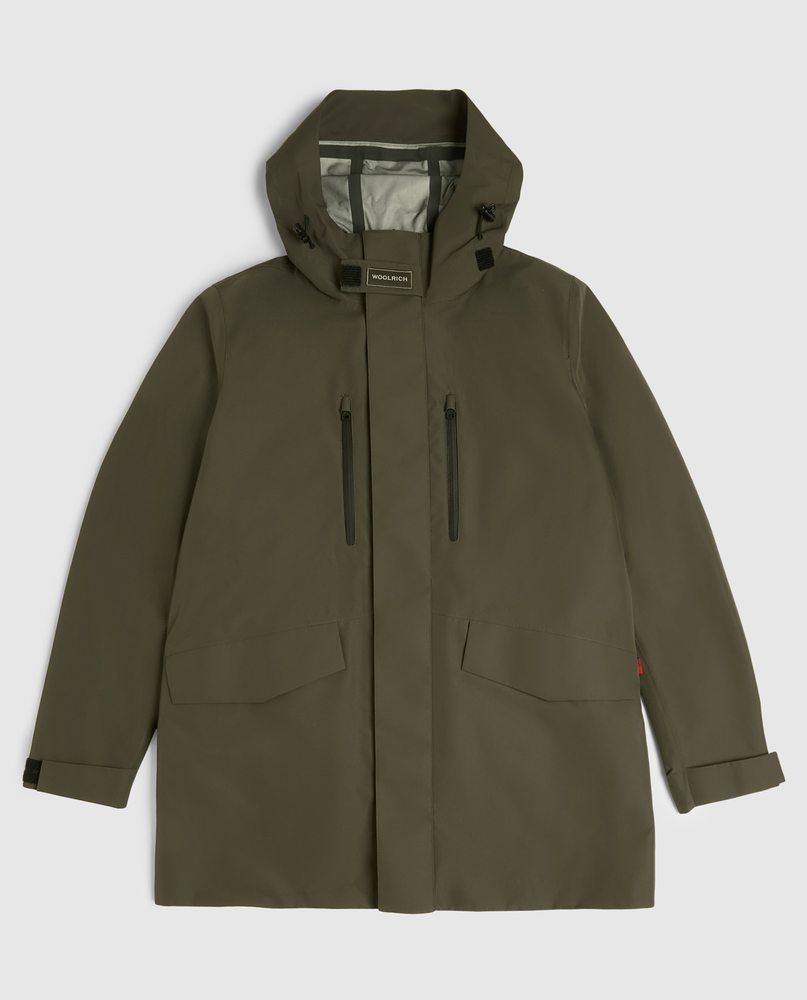 インナーダウンが取り外しでき、3WAY仕様で3シーズン着用できるウールリッチのカーコートです。環境への負荷が少なく、防臭、帯電防止、防水機能のあるグラフェン生地を使用しています。グラフェン生地は、熱を吸収して短時間で衣服全体を温め、さらに保温効果や体温調節機能を持つ高機能素材です。