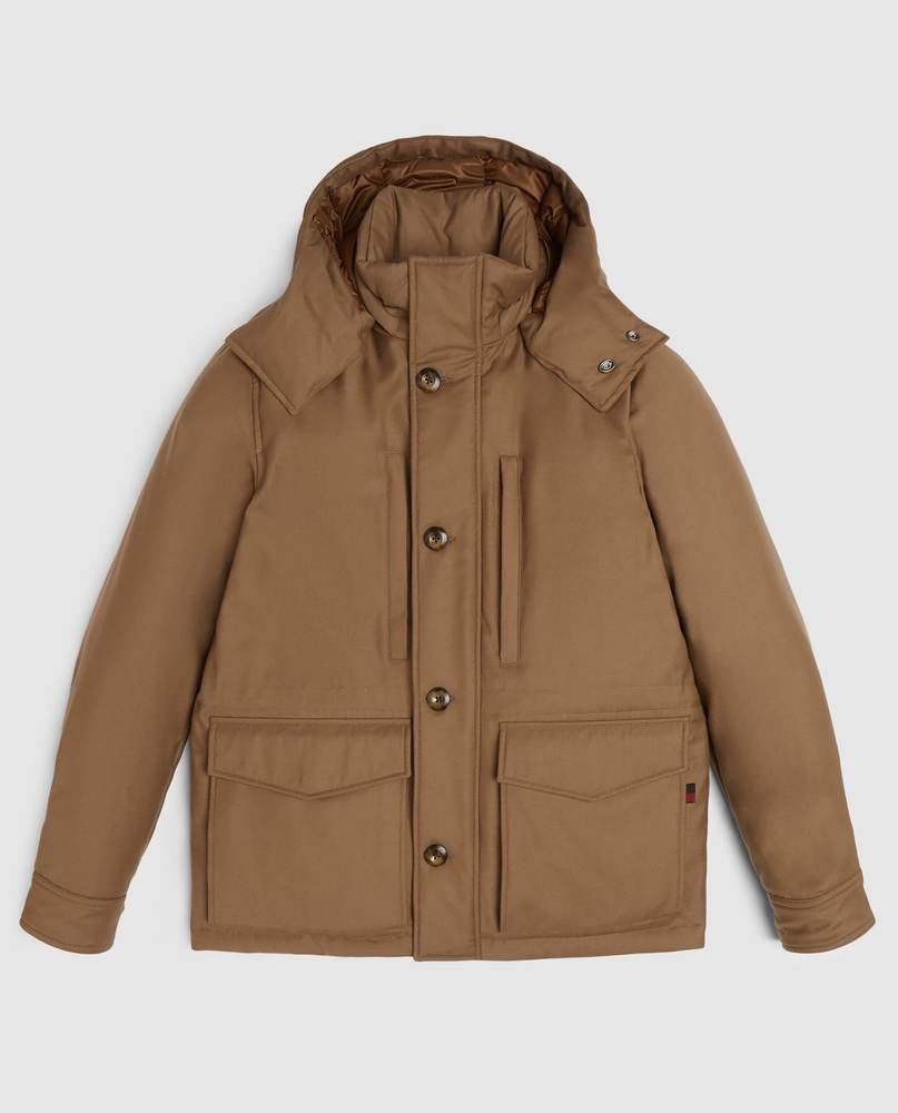 ロロ・ピアーナ社の透湿防水機能のある「ストームシステム」をアウターシェルに採用した、ブランドを代表するマウンテンジャケットです。上質な起毛のあるウール特有の柔らかさと機能性を併せ持ち、ハイネック仕様で防寒性もばっちりです。マウンテンパーカー特有の機能性はそのままに、洗練された上品なデザインにアップデートされた逸品となっています。