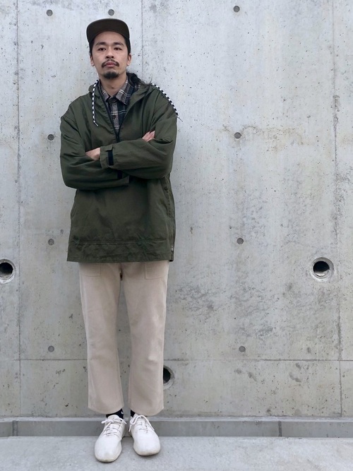 機能性の高いワークマンのマウンテンパーカーと、白のスニーカーを組み合わせたコーデです。このままアウトドアで活用できそうな着こなしです。キャップとの相性もよく、自然なかっこよさを得られるコーデです。