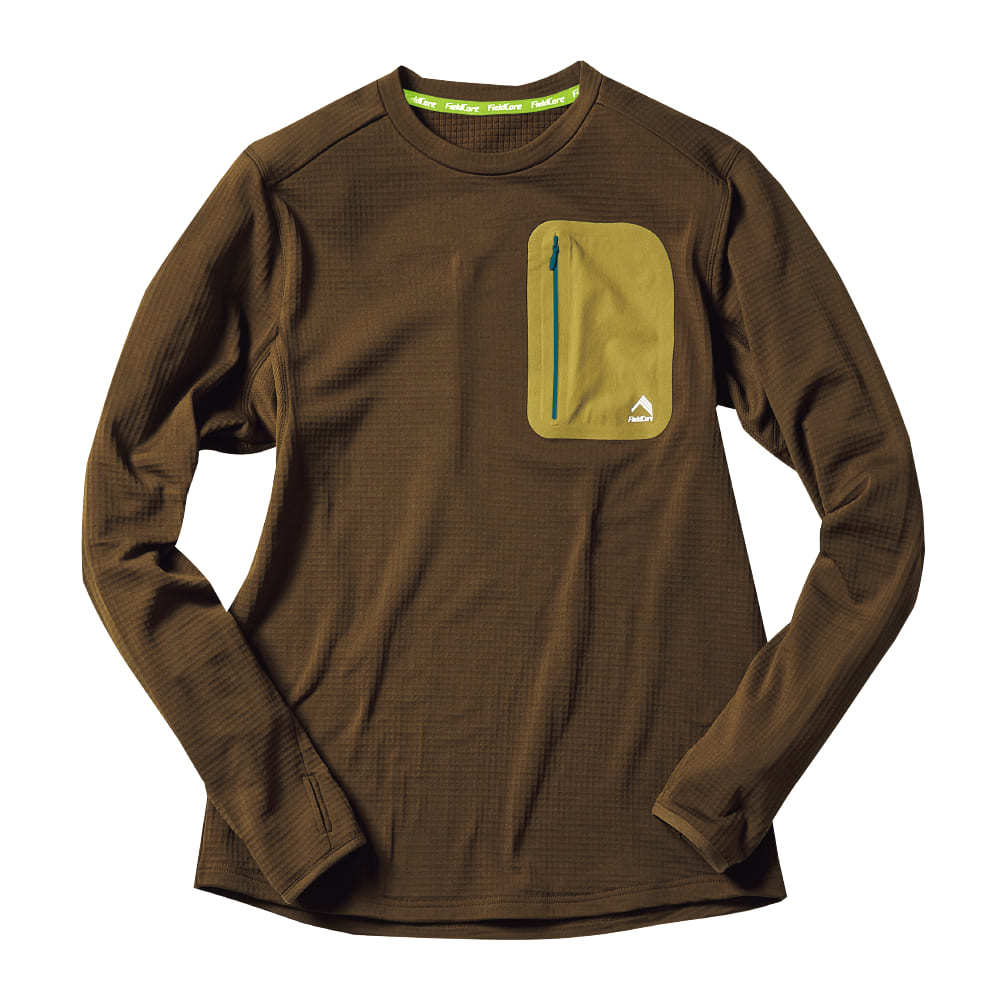ブロックフリーストレッキングクルーネックは、おしゃれで暖かいインナーを求めている男性におすすめです。薄すぎず厚すぎず、ベストサイズで選べばアウターの存在を崩さずコーデできます。ジャケットとの相性も良く、アウトドアにも活用できる万能アイテムです。