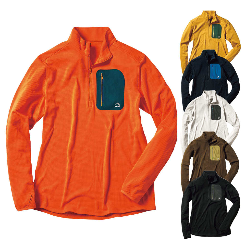 フリース素材を活用したブロックフリーストレッキング ハーフジップは、これ一枚でも暖かさを感じるアイテムです。シンプルなデザイのため、さまざまなパンツと着こなしでき、かっこよくも可愛くもコーデできます。できるだけぴったりとしたサイズでおしゃれに着こなすことをおすすめします。