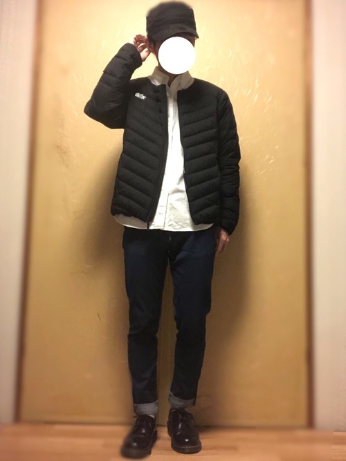インナーダウンのアウターに濃いめのデニムを合わせたきれいめカジュアルの着こなし。インナーに着たホワイトシャツが上品な印象を与えてくれます。ノースフェイスのステッチが細めなダウンなら、全体の雰囲気を崩さない防寒が叶います。