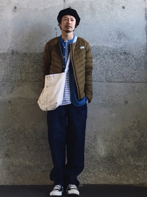 まずはノースフェイスのインナーダウンベストをつかった、おしゃれな着こなしを見ていきましょう。
