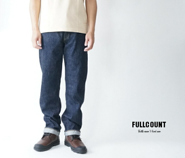 こちらは、フルカウントの定番モデルの中でも、最も細身のシルエットのモデルです。細身のストレートですっきりとしたコーディネートが可能で、カジュアルでありながら、どこか清潔感のある着こなしができます。股上も少し高めに作られており、足長効果も期待できるデザインとなっています。