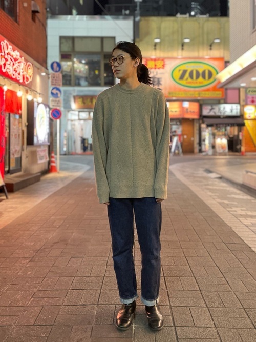 こちらは、ゆったりシルエットのニットにフルカウントのジーンズを合わせたコーディネートです。こちらも大きめシルエットに対して、ストレートのすっきりとしたフルカウントのジーンズがとってもマッチしています。カジュアルに着こなしたい方におすすめのコーディネートです。