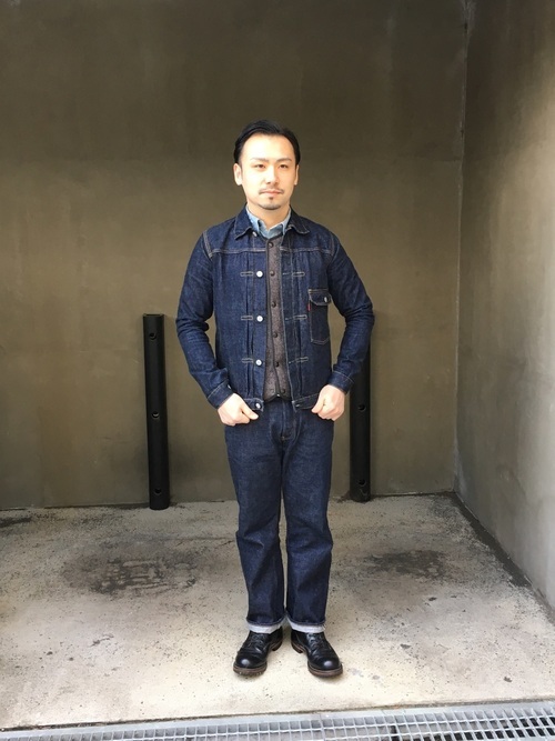 フルカウントのデニムジャケットにフルカウントのジーンズを合わせた上級者向けコーディネートです。デニムとデニムを合わせるのは難しいイメージがありますが、こちらのアイテムの組み合わせだと、すっきり着こなすことができ、全体的に縦のラインが映えているのでスタイルアップ効果も期待できます。ワンランク上のコーディネートを目指す方におすすめです。