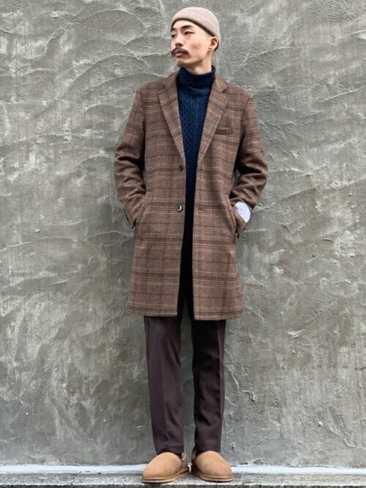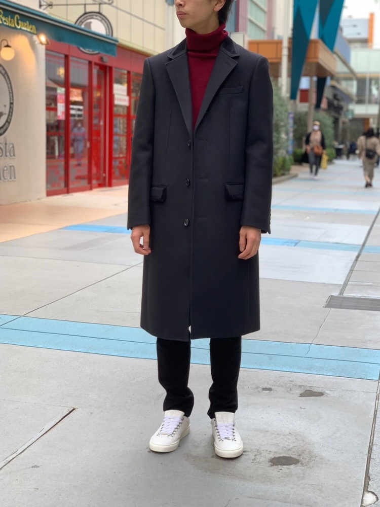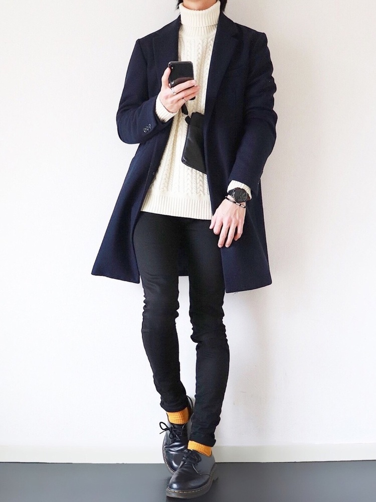 ブルータートルネック×チェスターコート×スキニーパンツ
