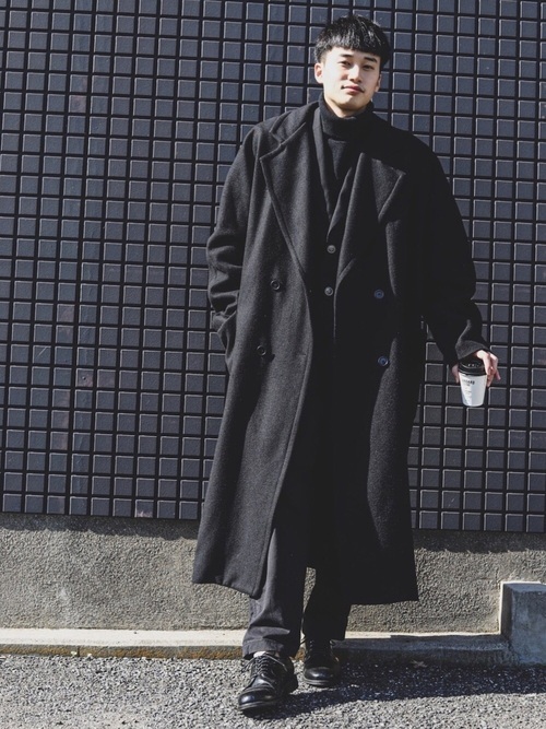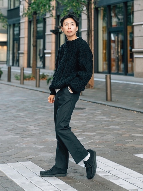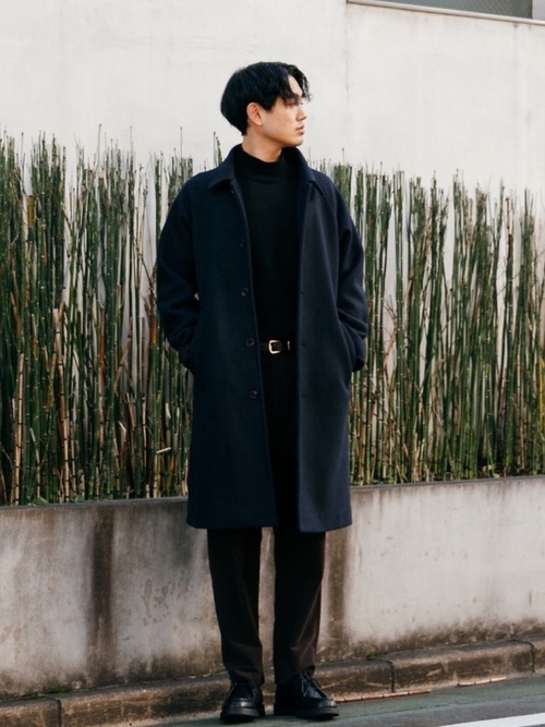 きれいめな要素を取り入れたい方には、Pコートやダッフルコートにきれいめのボトムスを合わせるコーデもおすすめです。黒ニットが品のある男らしさをもたらしてくれます。