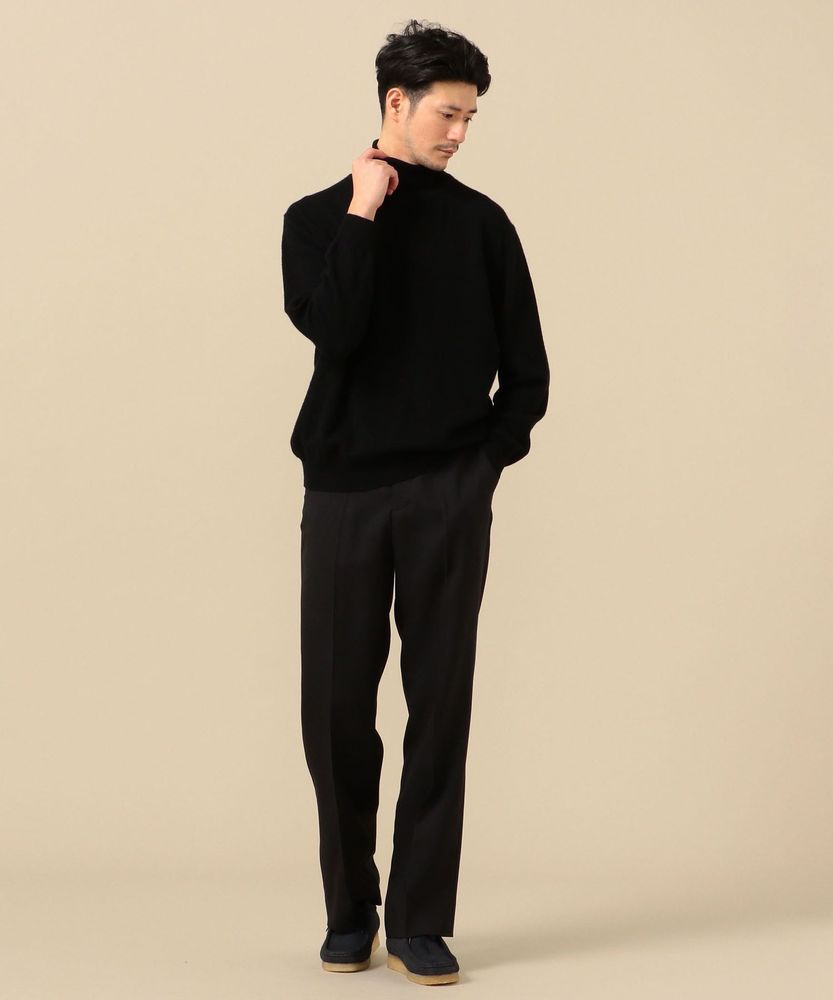 肌あたりのよいハミルトンラムズウールをブレンドしたモックネックニットです。素材特有のぬめりがあり、やわらかい風合いと手触りのよさが魅力です。身幅に適度なゆとりを持たせながらも、着丈はすっきりさせたルーズフィット。首周りに抜け感のあるリラックスしたモックネックで、一枚でも雰囲気のあるコーデに仕上がります。