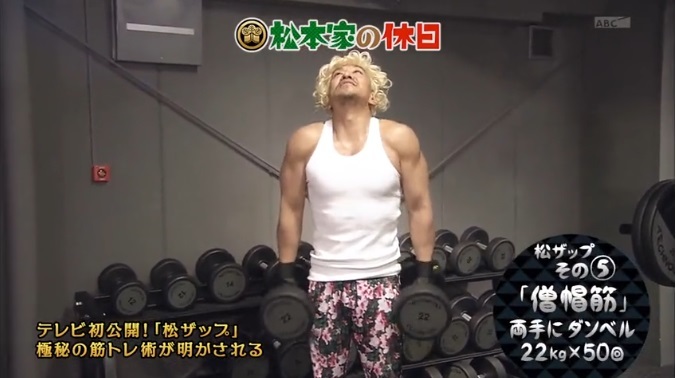 松本人志は胸筋だけでなく太い上腕筋も特徴的ですが、このトレーニングで作り上げられていたんですね。