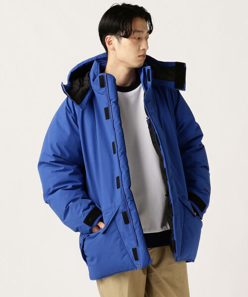 BEAMSとマーモットがコラボしたダウンパーカーです。インポートマンモスダウンパーカーはブラック、ターコイズ、ピンク、マスタードのカラーラインナップですが、こちらの商品はブラックとブルーのラインナップで汎用性の高いデザインとなりました。nnYラインコーデと大きめのサイズが好きなメンズにおすすめのダウンです。