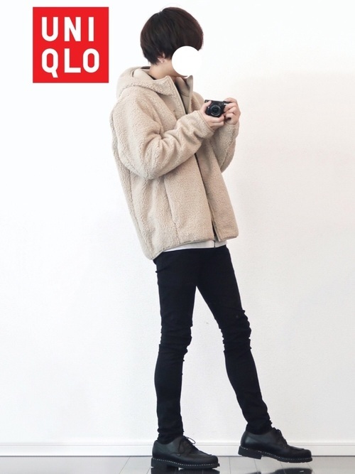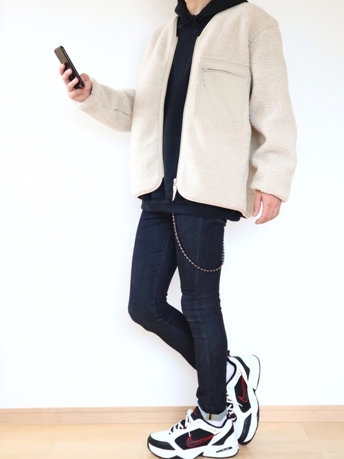 フリースとパーカーを使い、トップスにボリュームを出したメンズコーデです。パンツはしっかりと引き締めてメリハリを。足下はゴツめのシューズで遊び心をプラスしています。大人っぽくキメるなら足元は革靴でコーデしても良いでしょう。インナーにハイゲージニットをもってくるのもおすすめです。