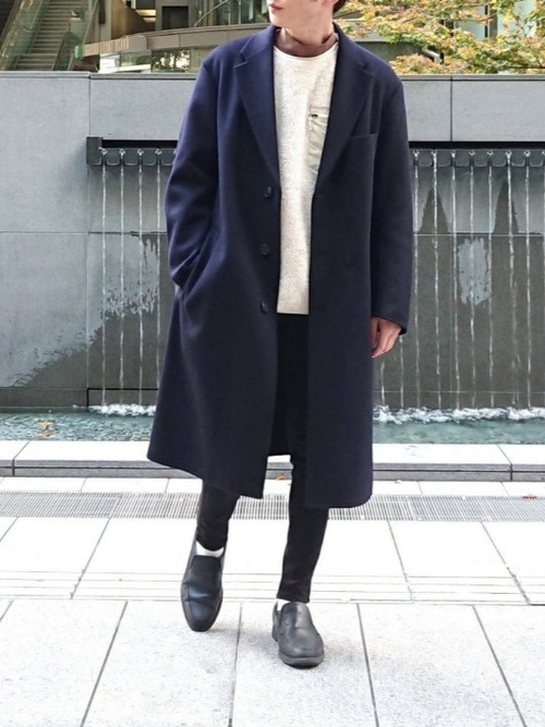 プルオーバーのフリースの上にコートを合わせた着こなしです。大人っぽくスタイリッシュな印象ですが、コートを脱げば暖かみのあるコーデが現れます。デートなどに最適なメンズコーデでしょう。